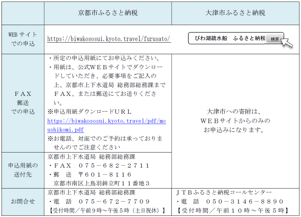 ふるさと納税による乗船については、既存の京都市ふるさと納税に加え、今春から新たに大津市ふるさと納税も対象とします。