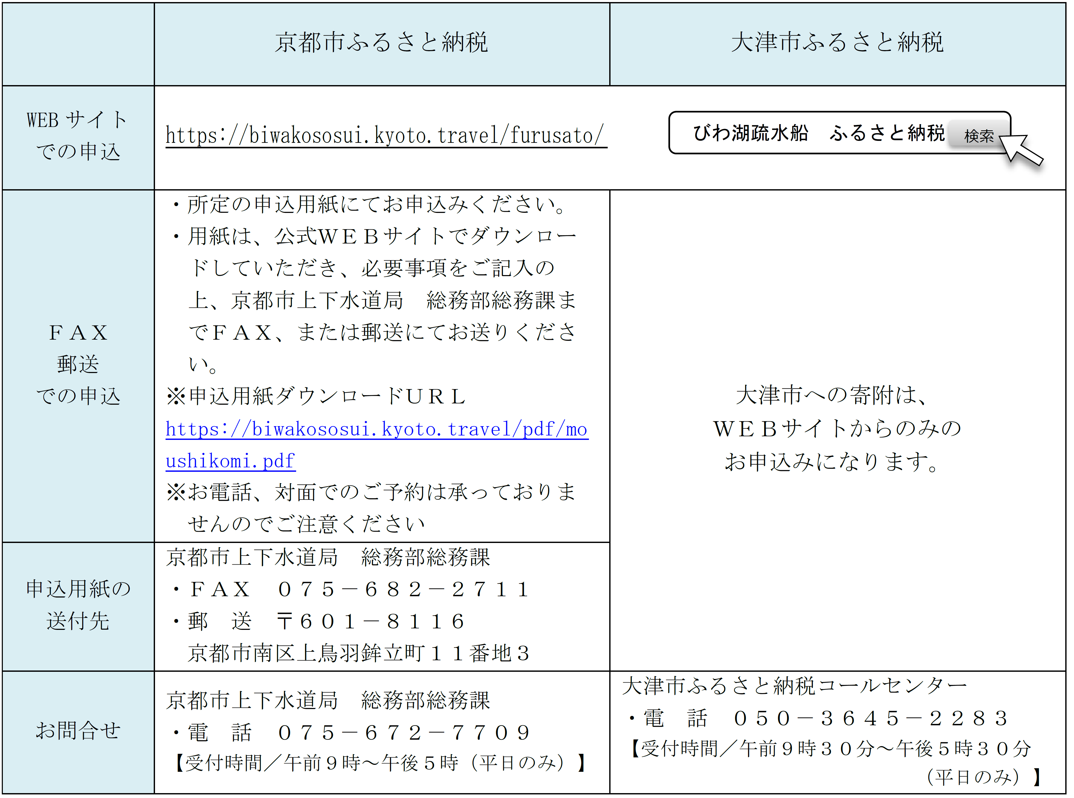 先行予約期間中に、京都市または大津市に対してふるさと納税制度を利用してご寄附いただくと、一般の方よりひと足早くご予約いただけます。
